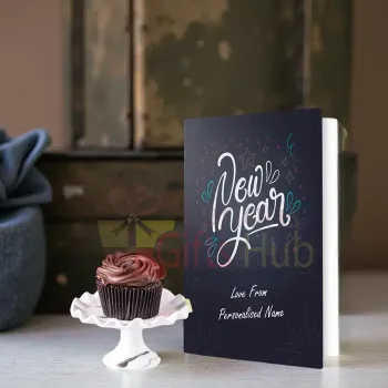 Add sweetness to your celebrations with the Cup Cake with Personalized New Year Card, a delightful t..
